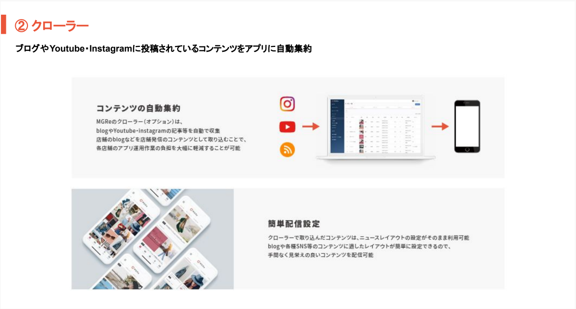 – クローラー機能でSNS投稿やブログ記事を自動収集・配信し、ユーザーとの接点を拡大
