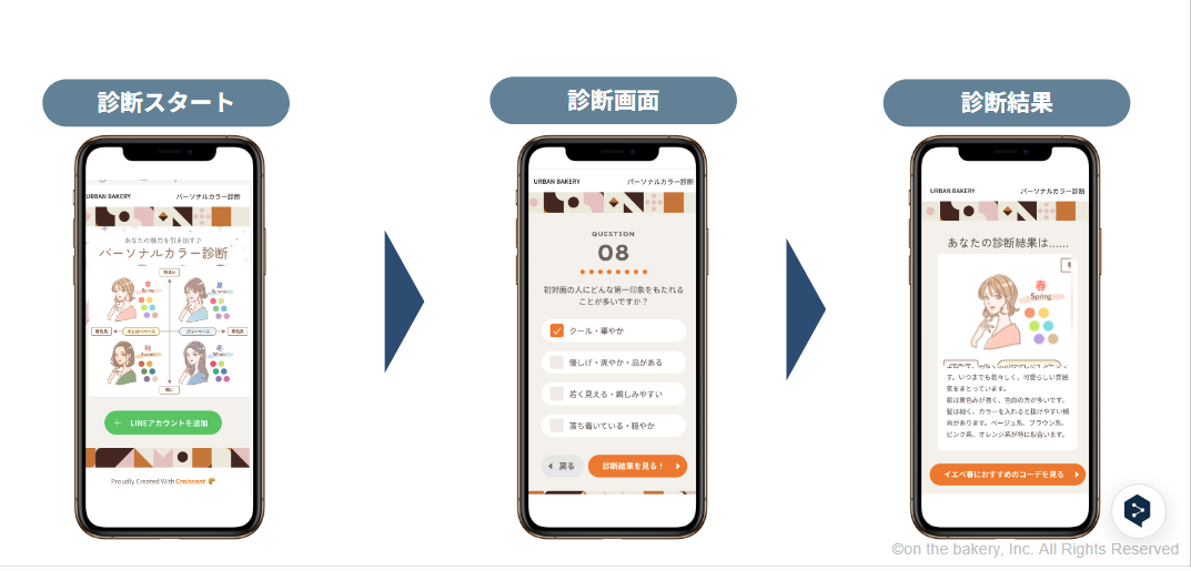 診断コンテンツは、ユーザー参加型のゲーミフィケーション施策です。質問に答えるだけで診断結果が表示され、その内容に合ったおすすめの商品ページへ誘導できます。ファッションや化粧品分野でよく使われる施策で、スタイル診断や肌質診断により、商品選びの負担を軽減できます。